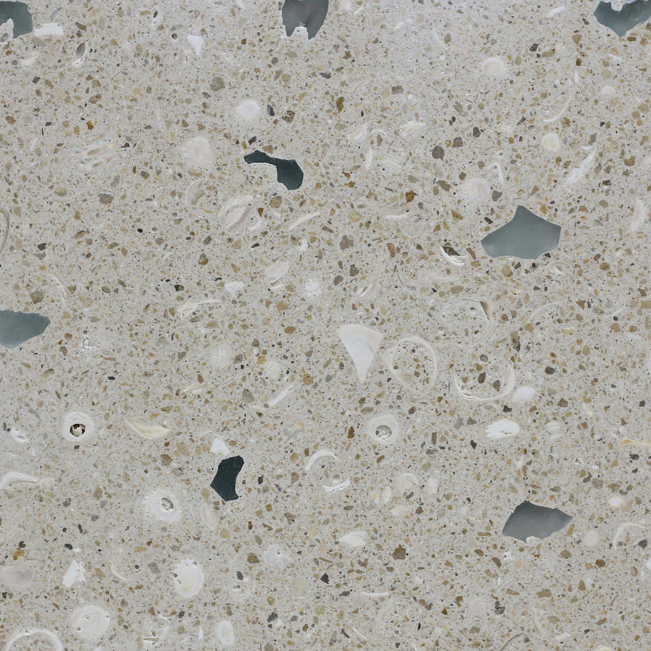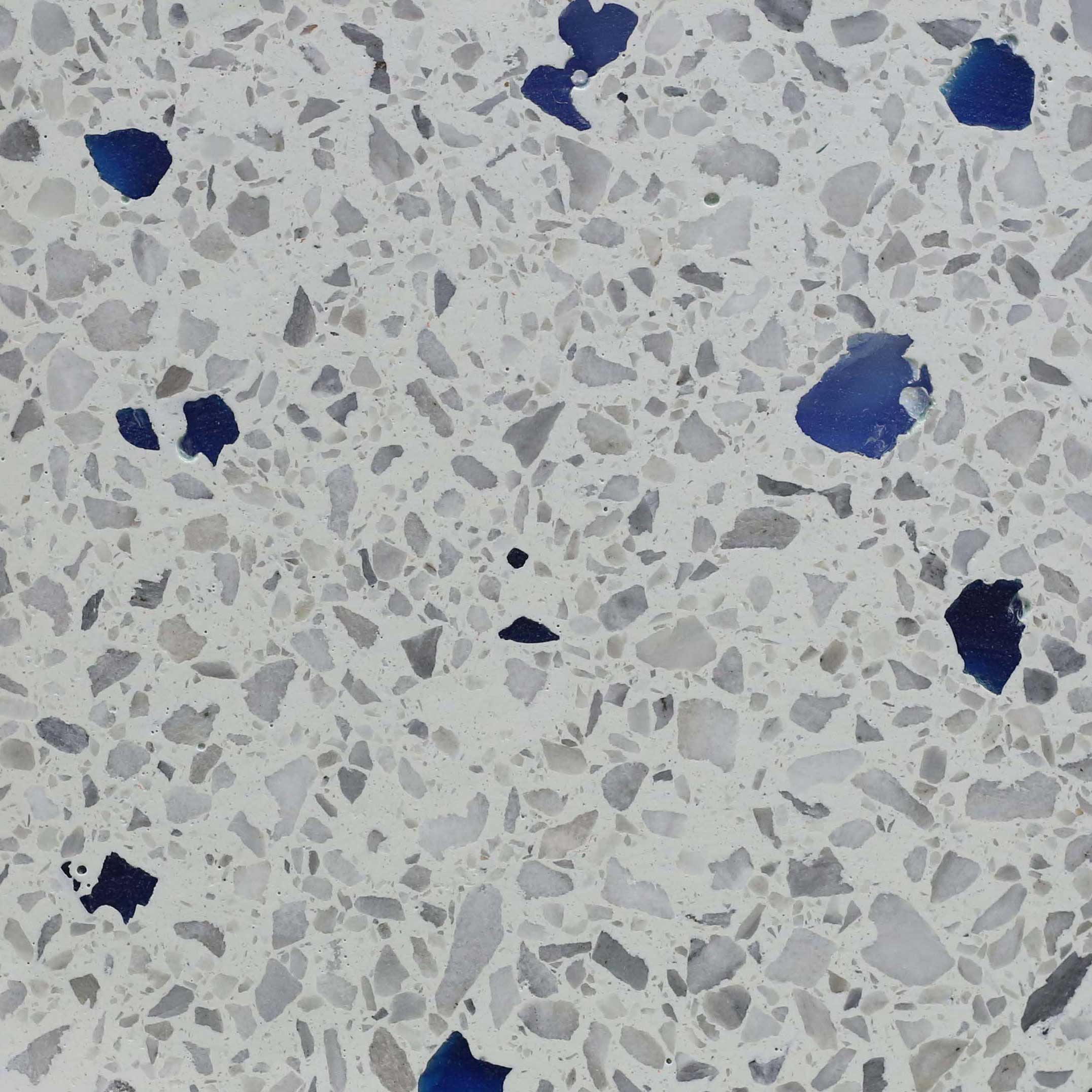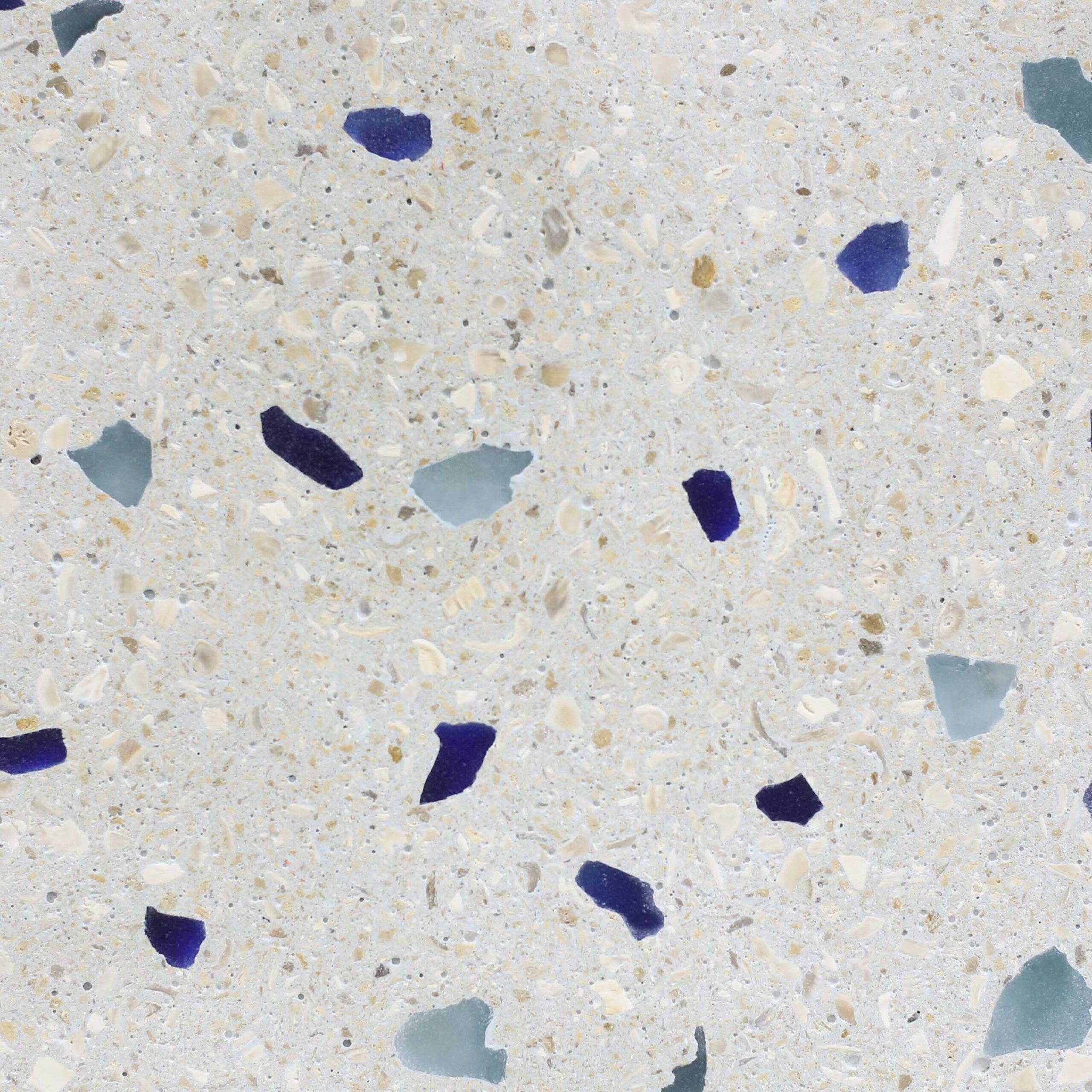 Bone with White & Gray Small Marble Chips, Small Crystal Turquoise Glass & Aggregate